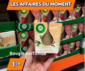 La bougie parfumée Air Wick est au prix de 1.58€ chez Action.