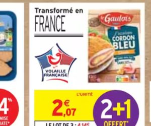 Pour l’achat de deux barquettes de cordon bleu de dinde Le Gaulois, recevez une barquette gratuite chez Intermarché.