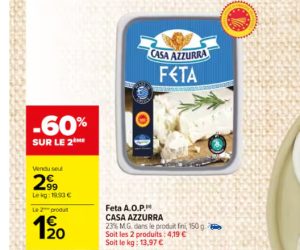 Achetez un deuxième Feta A.O.P Casa Azzurra et profitez d’une remise immédiate de -60% chez Carrefour market.