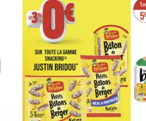 Pour l’achat de deux produits dans la gamme de snacking Justin Bridou, profitez d’un 3ème produit offert chez Casino.