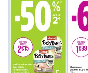 Achetez une deuxième barquette de jambon le Bon Paris Herta sans nitrite et profitez d’une remise immédiate de -50% chez Géant casino.