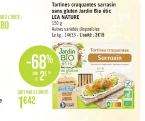 Achetez une deuxième tartines craquantes sarrasin sans gluten Jardin bio étic Jardin Nature et profitez d’une remise immédiate -68% chez Géant Casino.